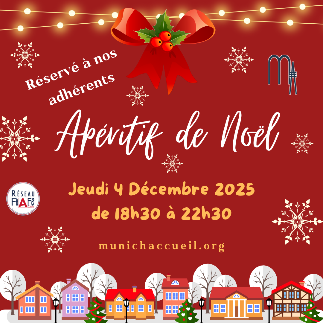 Noël approche. Comme chaque année, Munich Accueil aimerait offrir un apéritif de Noël à ses adhérents et profiter de l'occasion pour fêter cette belle période de l'avent.
